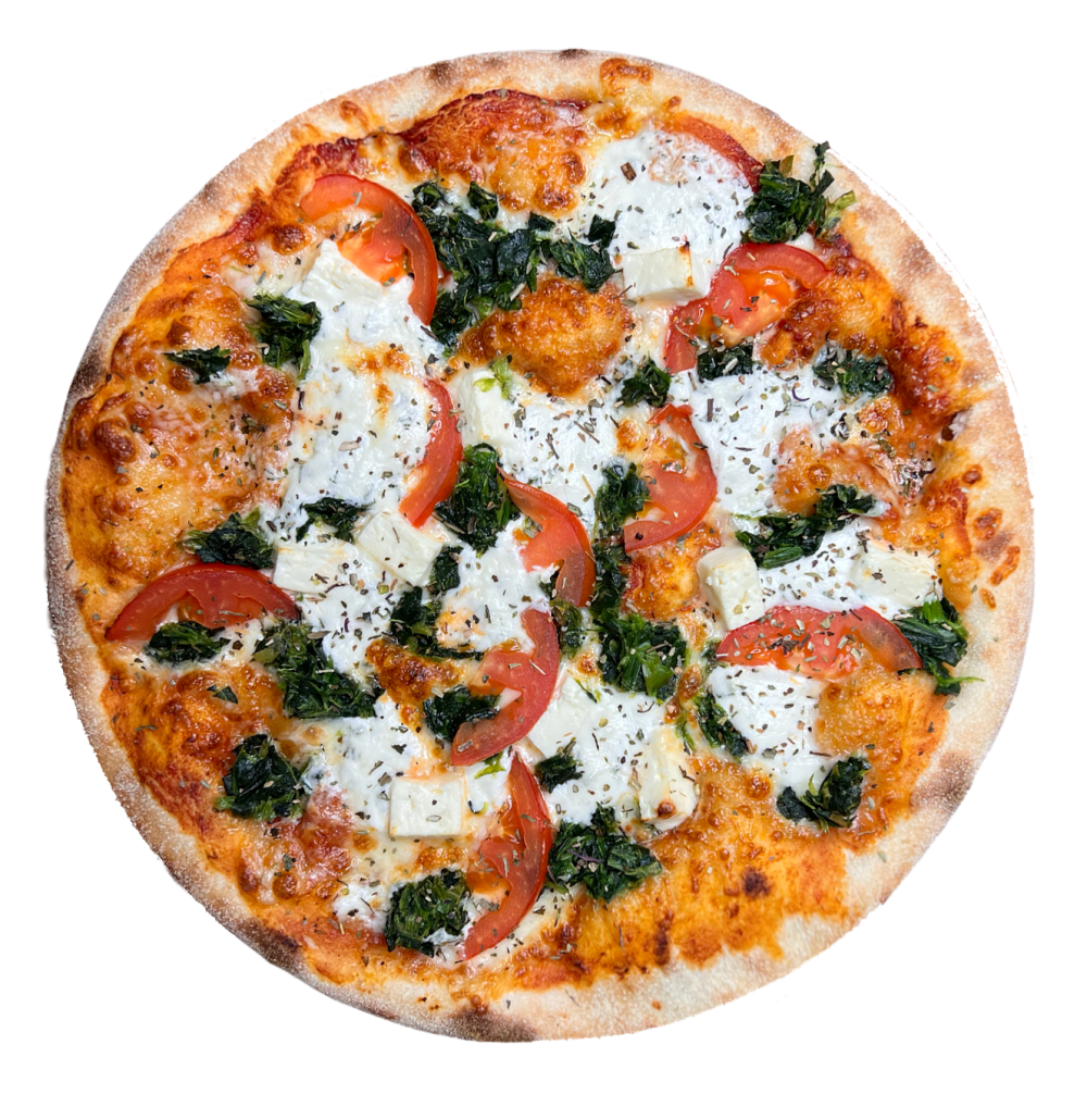 Сыр фета, моцарелла, шпинат, томаты, сметанно-чесночный соус