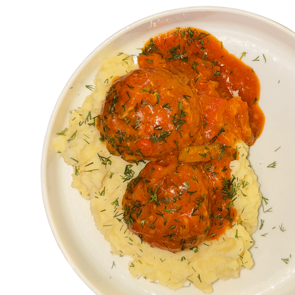 Тефтели в томатном соусе, картофельное пюре